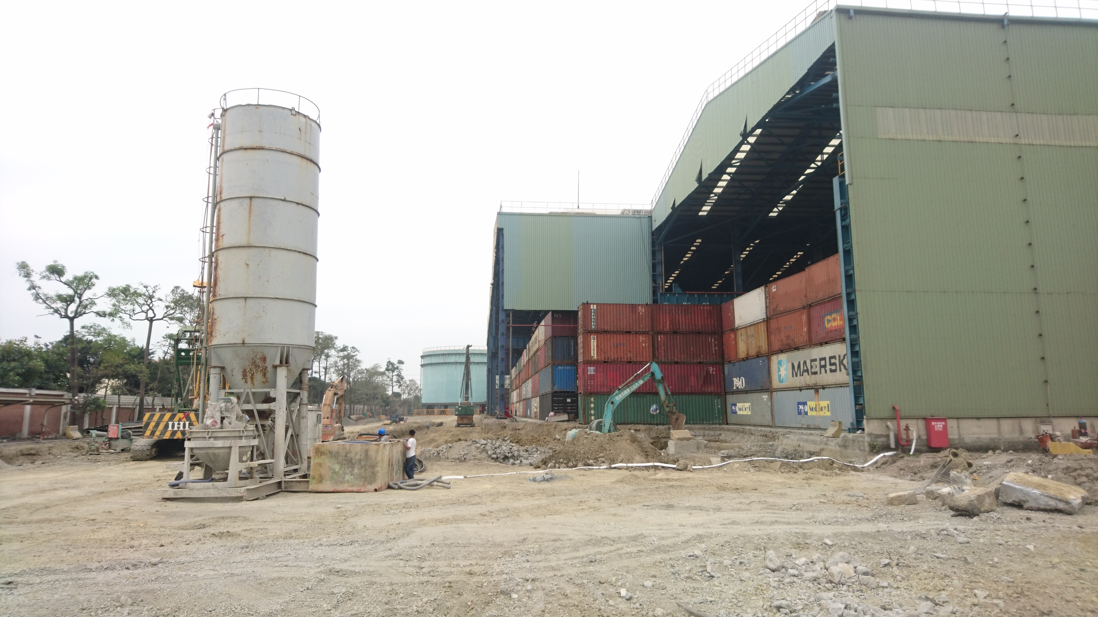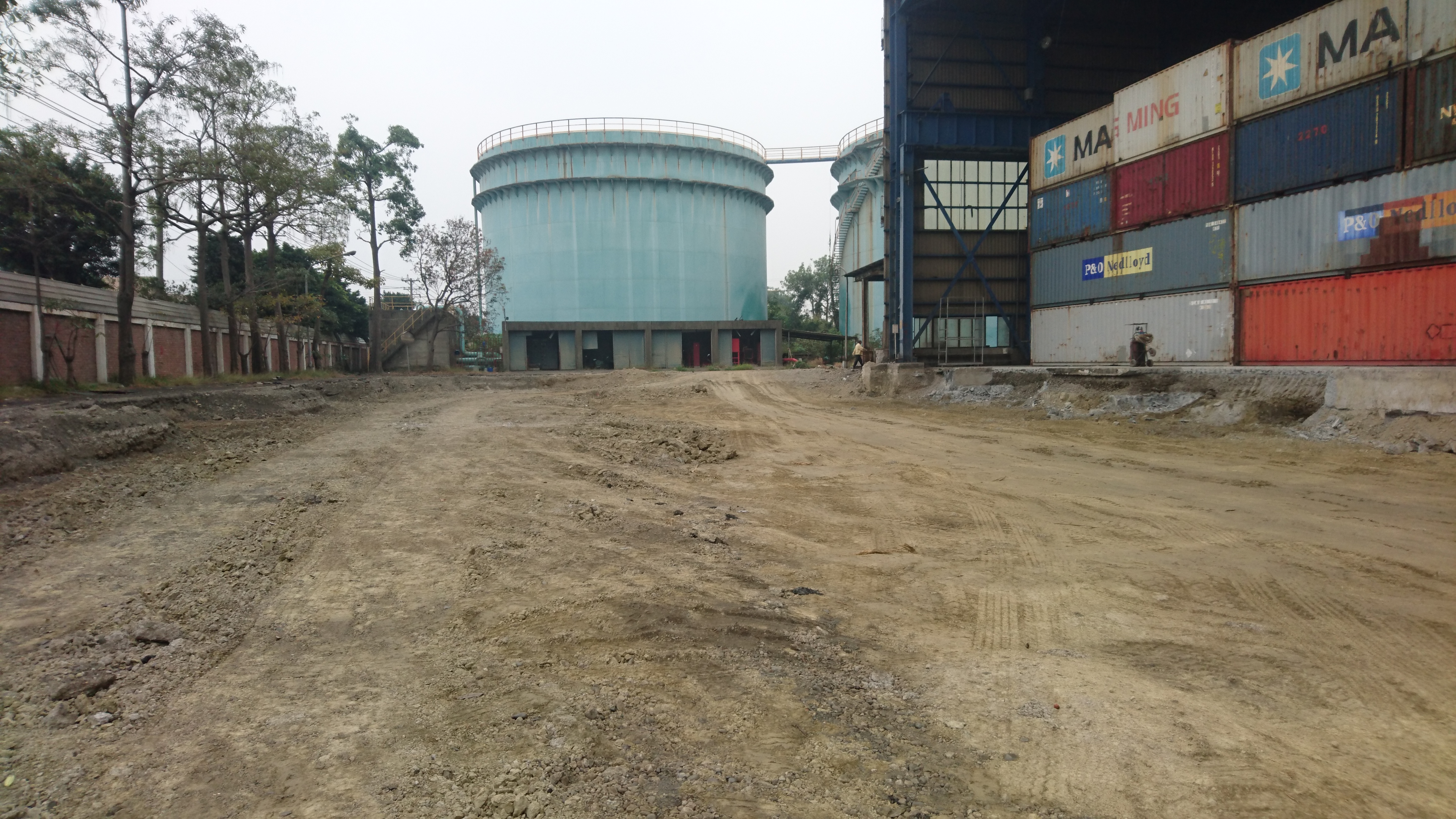 ↑工區場勘 : 待續水塔拆除以及之後的廠房設備基樁工程。